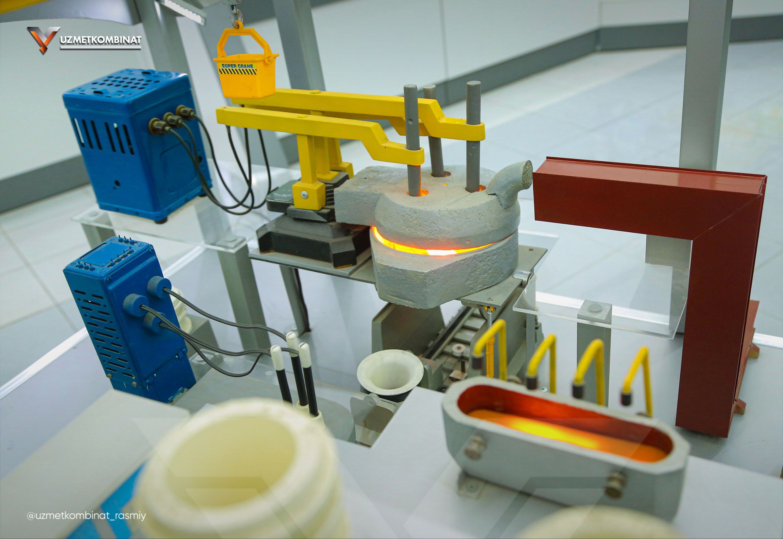 Bugun sizlarni kombinat tarixi muzeyining eng noyob va qadrli eksponatlaridan biri bilan tanishtiramiz. Bu — korxonamizning ishchilari o‘z qo‘llari bilan yasagan Elektrda po‘lat eritish bo'linmasining maketi.