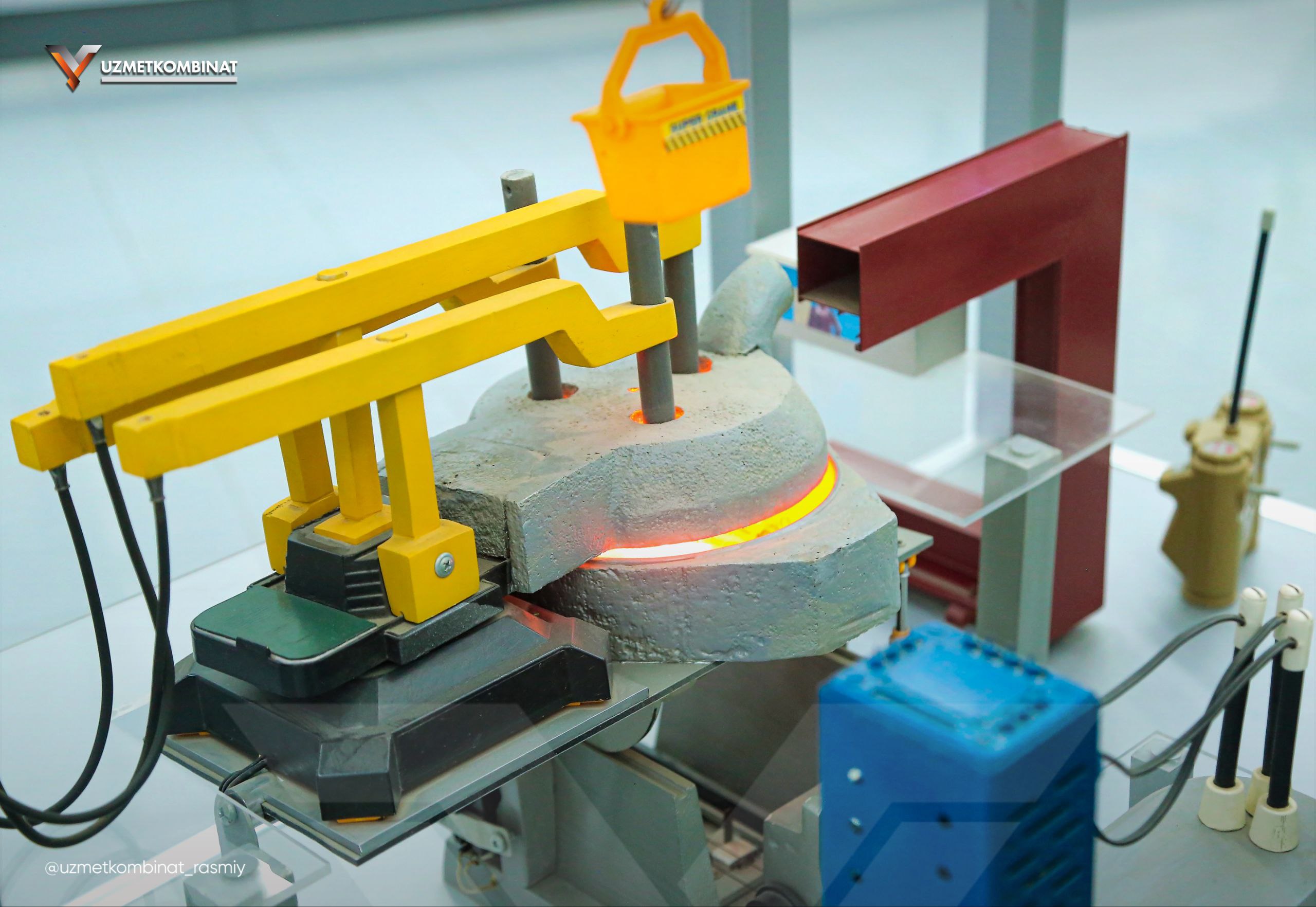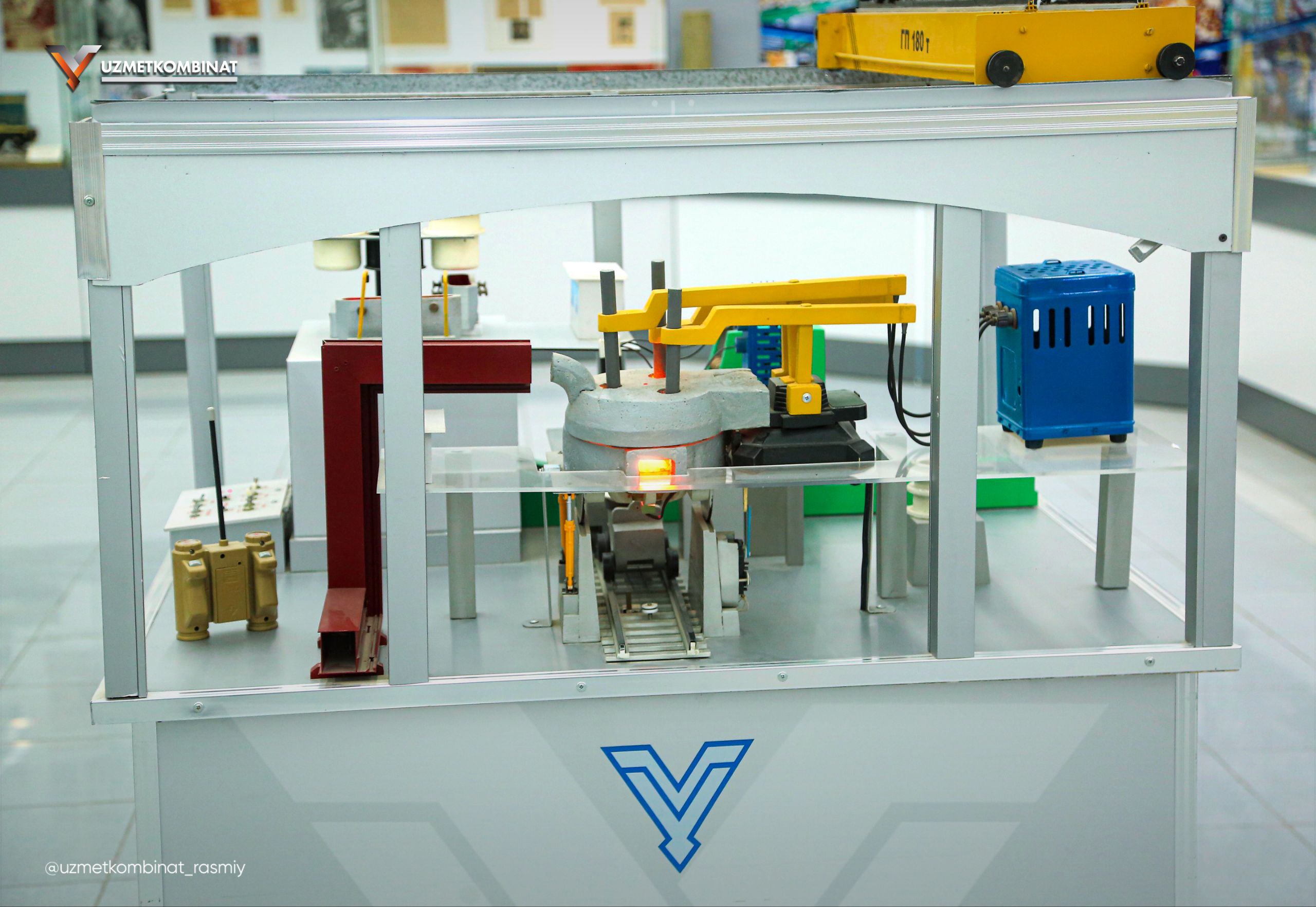 Bugun sizlarni kombinat tarixi muzeyining eng noyob va qadrli eksponatlaridan biri bilan tanishtiramiz. Bu — korxonamizning ishchilari o‘z qo‘llari bilan yasagan Elektrda po‘lat eritish bo'linmasining maketi.