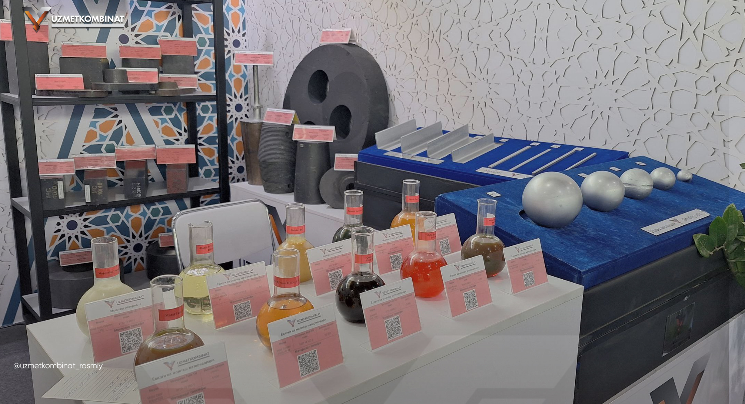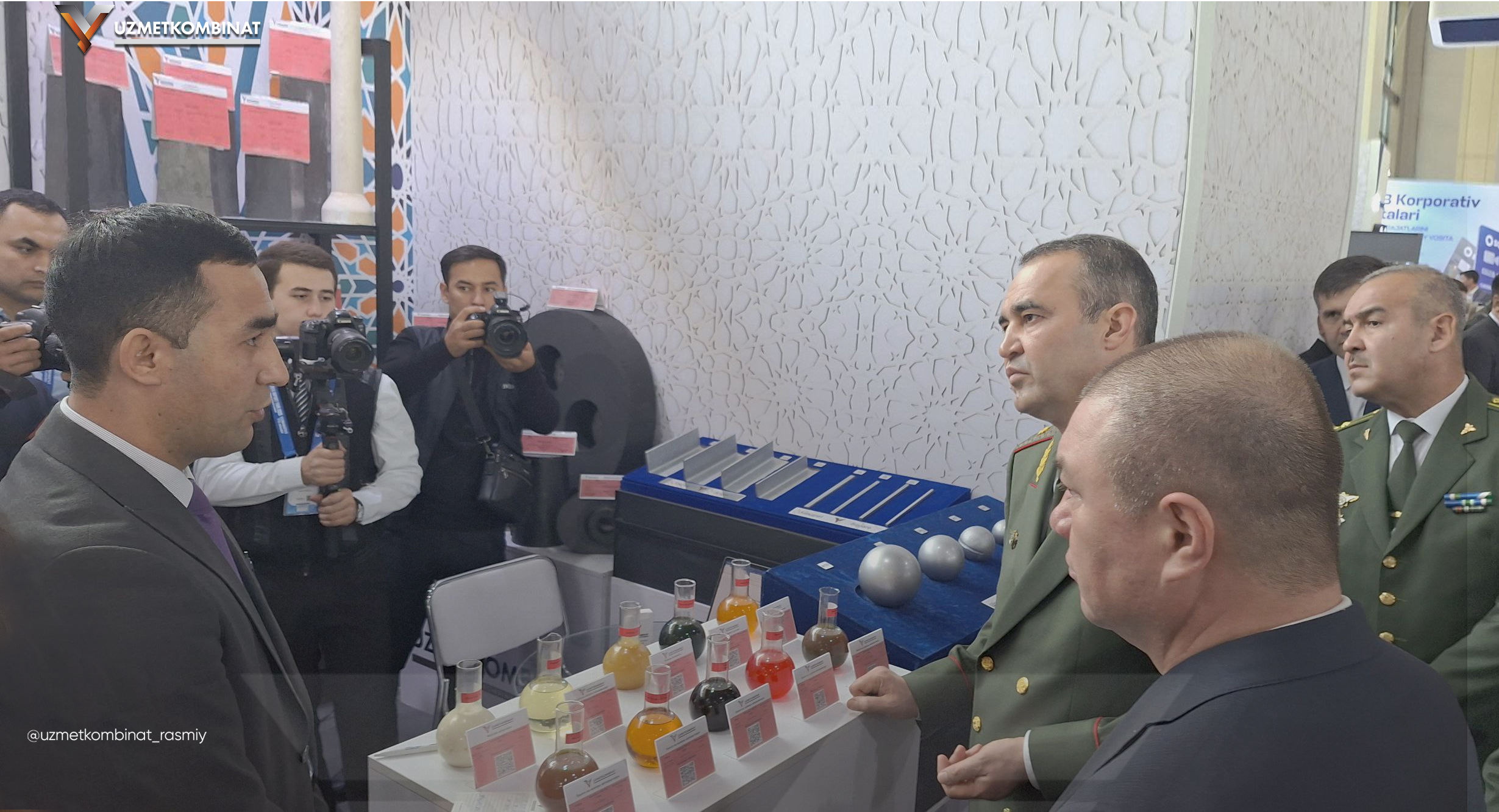 “O‘zmetkombinat” AJ vakillari ko‘rgazmada o‘tga chidamli materiallar, olovbardosh massalar, yoqilg‘i va moylash vositalari kabi import mahsulotlar bilan birga, kombinatda ishlab chiqarilayotgan mahsulotlarni ham taqdim etishmoqda.