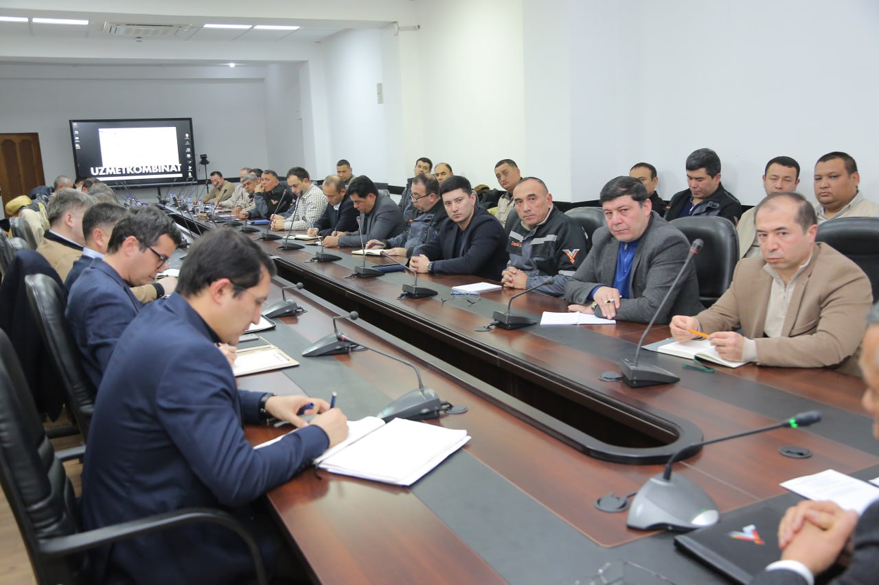 “O‘zmetkombinat” AJda Boshqaruv raisi - Bosh direktor Bahodir Abdullayev raisligida Yangi yil bayrami tadbirlarini belgilangan tartibda o‘tkazish hamda bayram kunlarida korxona hududida xavfsizlik va yong‘in xavfsizligi choralarini kuchaytirish masalalari yuzasidan yig‘ilishi o‘tkazildi.