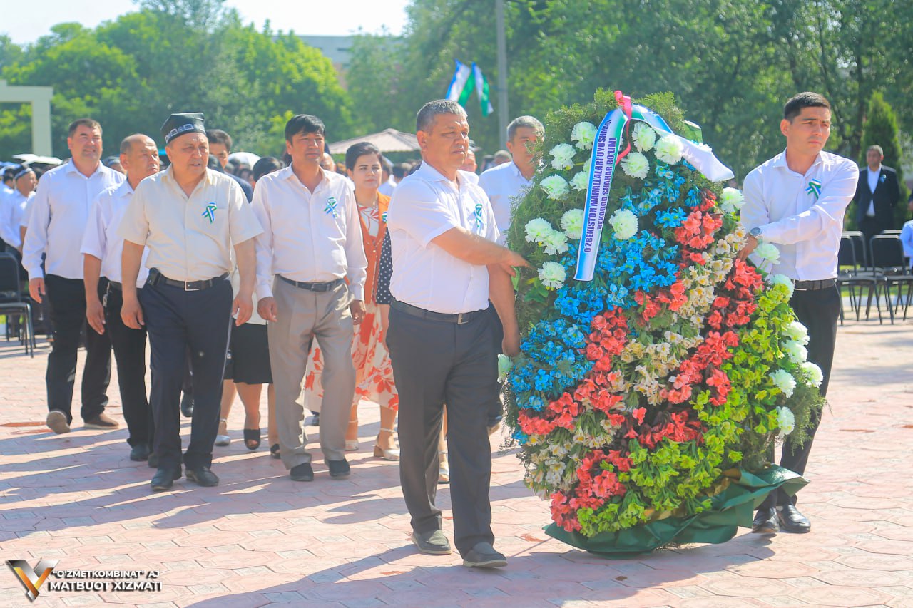 "O‘zmetkombinat" AJ, shahardagi korxonalar, mahalla va ta’lim muassasalari vakillari yodgorlik poyiga gullar qo‘yib, Vatan tinchligi va ozodligi yo‘lida jon fido qilganlar xotirasiga hurmat bajo keltirdi.