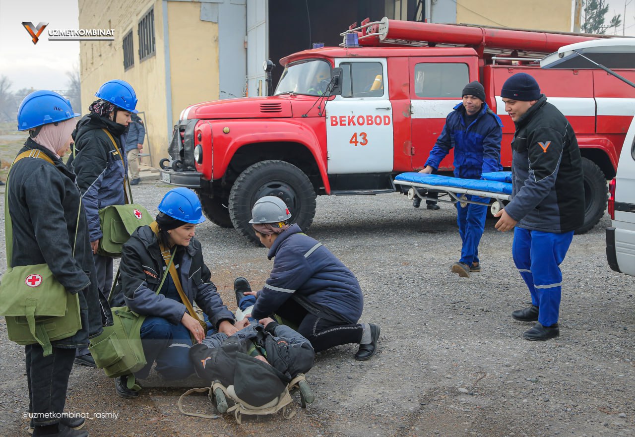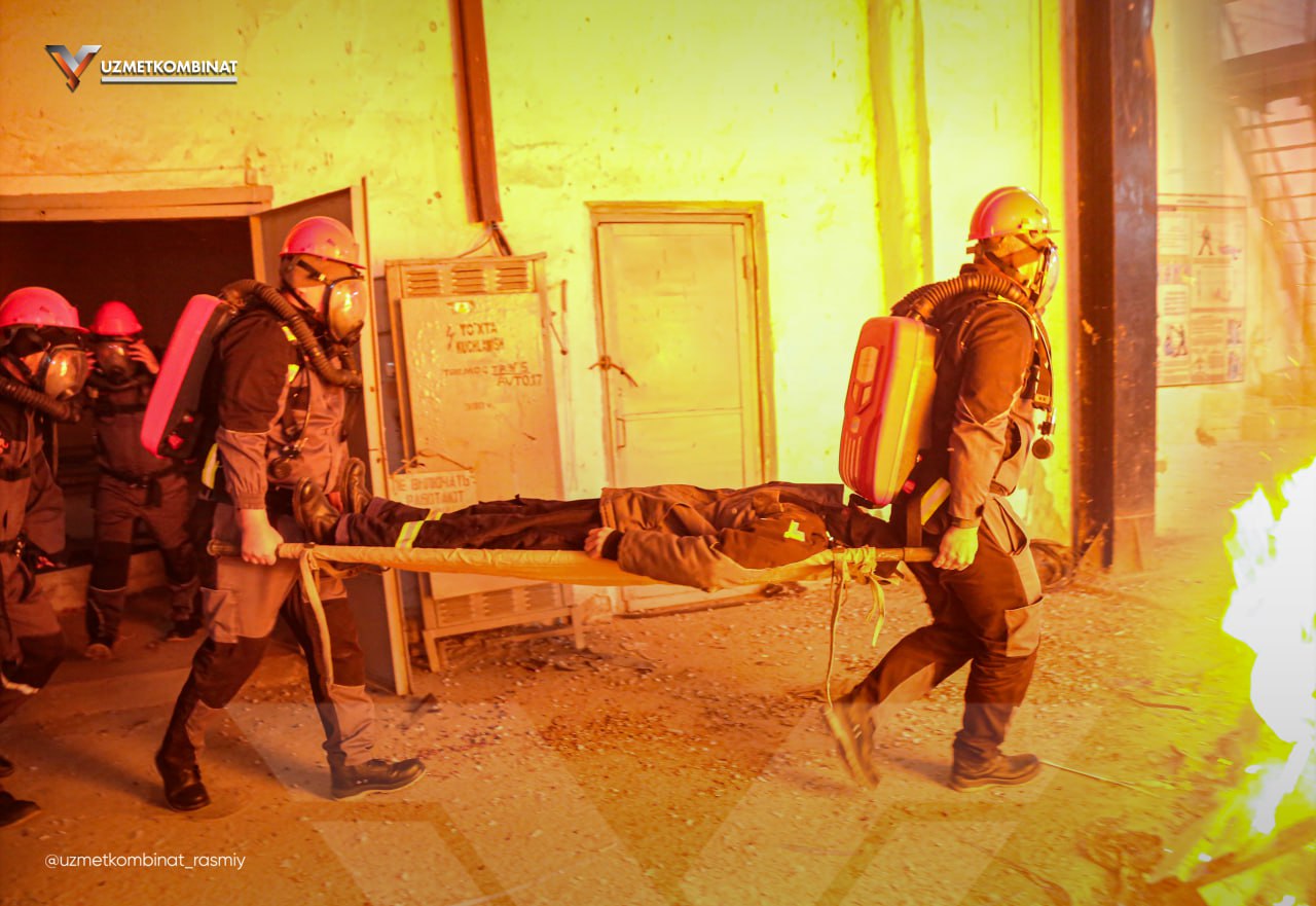 “O‘zmetkombinat” AJda “Tabiiy va texnogen xususiyatli favqulodda vaziyat sodir bo‘lganda obyekt rahbariyati va fuqaro muhofazasi tuzilmalarining birgalikdagi harakatlari” mavzusida maxsus-taktik o‘quv mashqi o‘tkazildi.