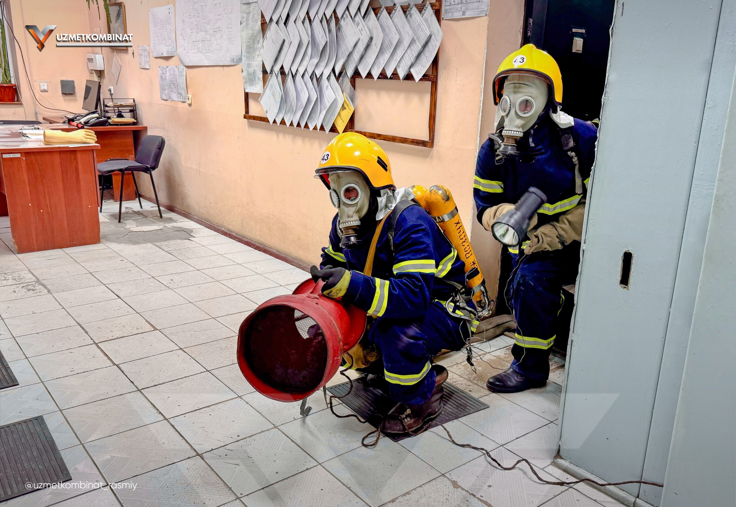 “O‘ZMETKOMBINAT”DA YONG‘IN XAVFSIZLIGI BO‘YICHA TAKTIK-O‘QUV MASHG‘ULOTI O‘TKAZILDI