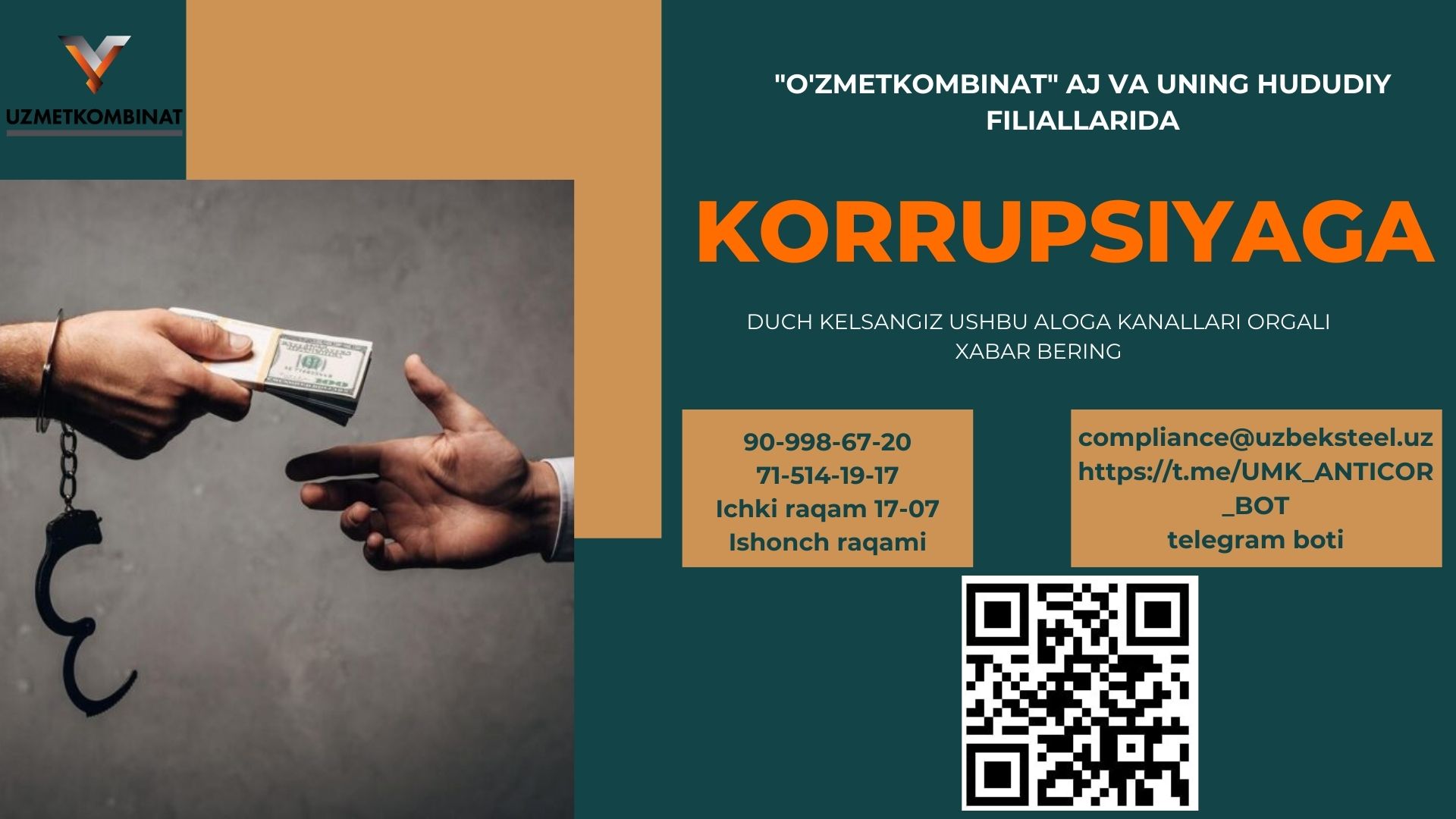Boshqaruv raisi - Bosh direktor murojaati - "Korrupsiyaga yo'l qo'ymaylik!" ("Metallurg minbari" gazetasining 9-soni. 2025-yil avgust).
