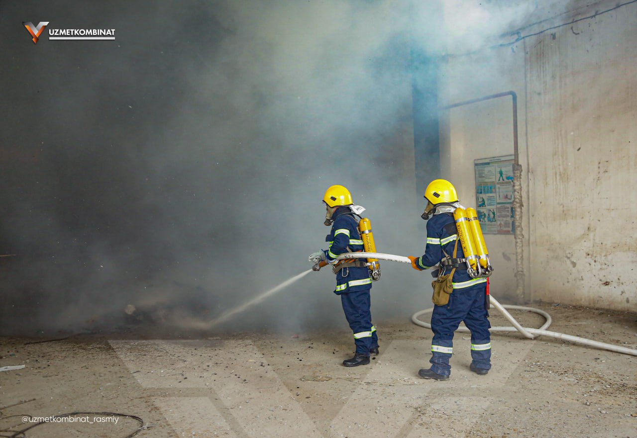 “O‘zmetkombinat” AJda “Tabiiy va texnogen xususiyatli favqulodda vaziyat sodir bo‘lganda obyekt rahbariyati va fuqaro muhofazasi tuzilmalarining birgalikdagi harakatlari” mavzusida maxsus-taktik o‘quv mashqi o‘tkazildi.