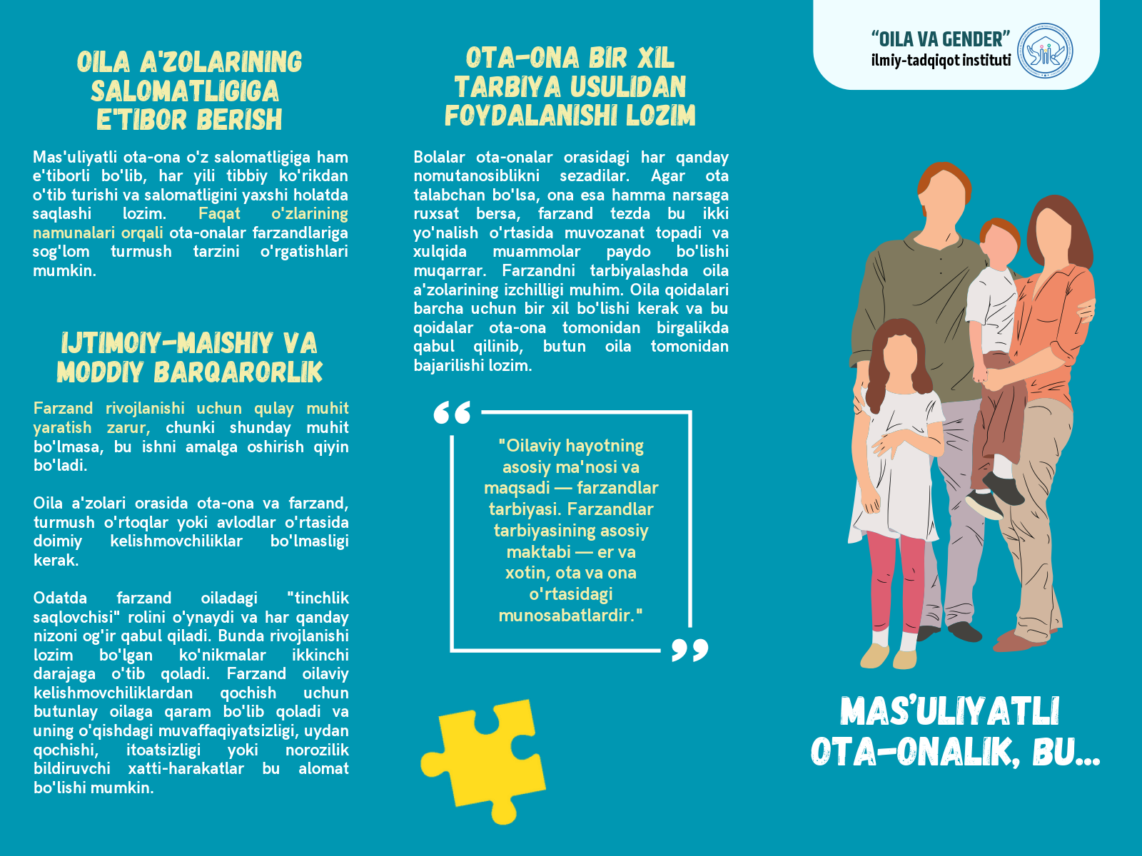 Ya’ni oila faqat birga yashash yoki moddiy ehtiyojlarni qondirish uchun emas, balki kelajak avlodni to‘g‘ri tarbiyalash uchun eng muhim maskandir.