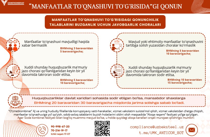 "Manfaatlar to'qnashuvi - Halollik va ishonchga tahdid" ("Metallurg minbari" gazetasuning 12-soni 2025-yil oktabr).